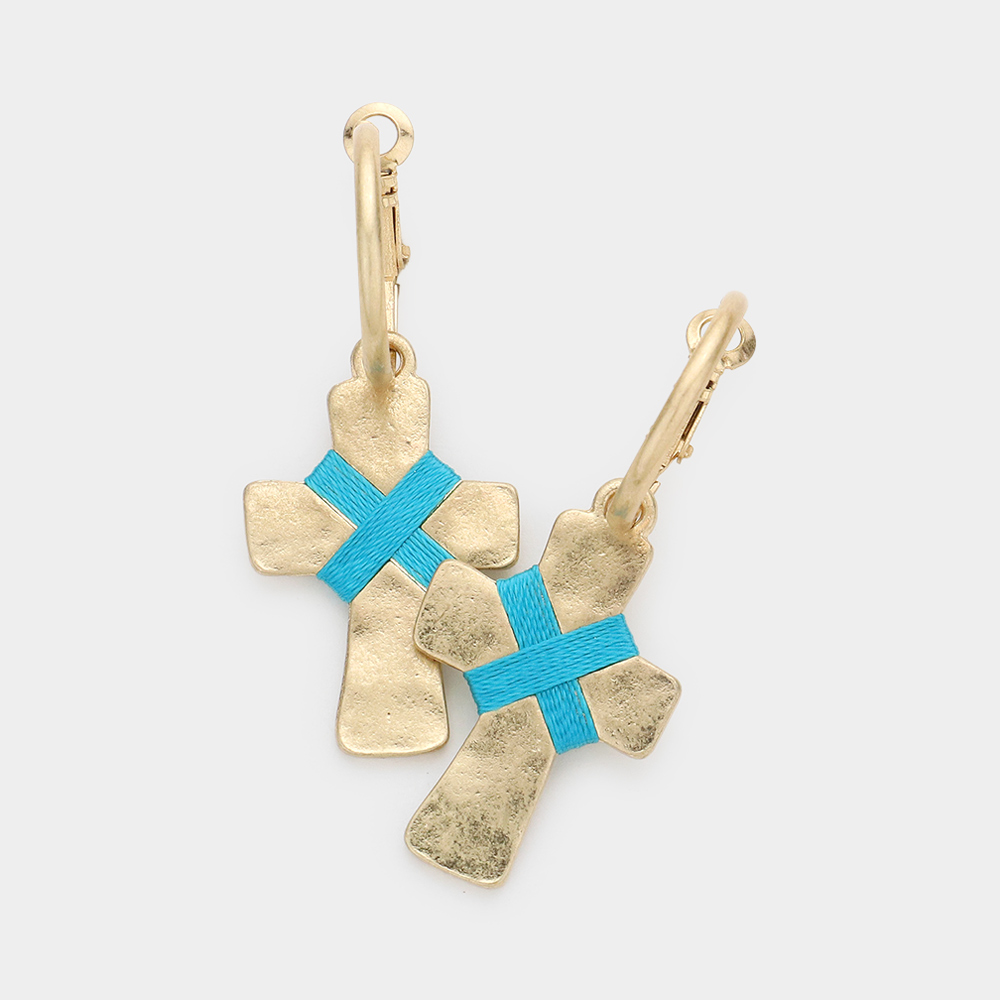 Abalone Embossed Antique Metal Cross Dangle Earrings