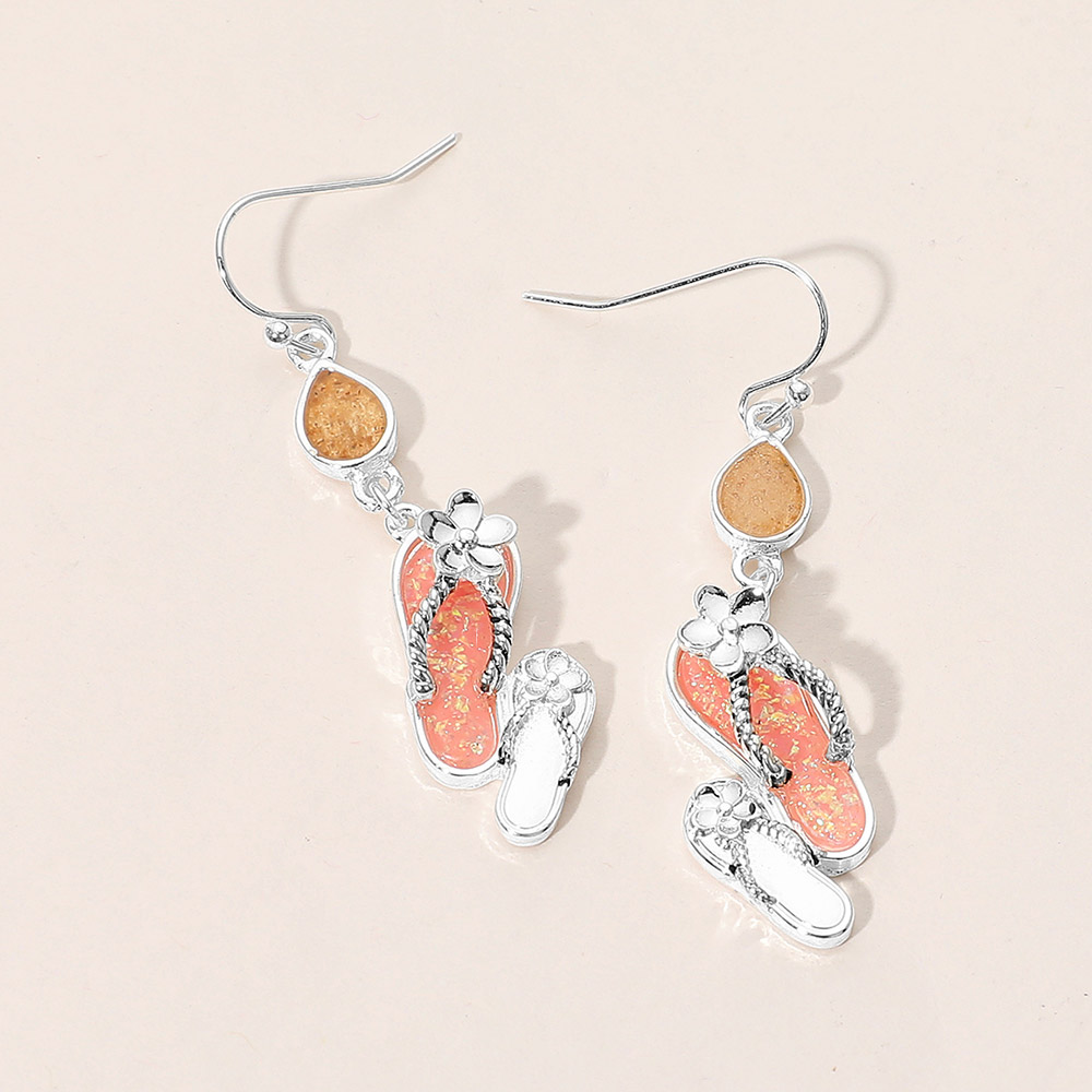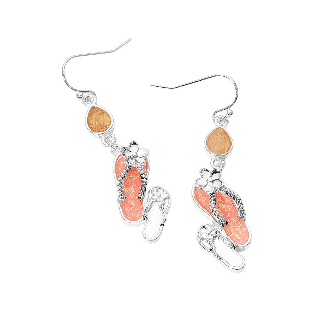 • Beach inspired flip flop charm drop earrings featuring playful movement and a relaxed coastal theme. A fun accessory for summer outfits, vacation looks, resort wear, and seaside gift assortments, adding personality and seasonal appeal while remaining lightweight and easy to style.