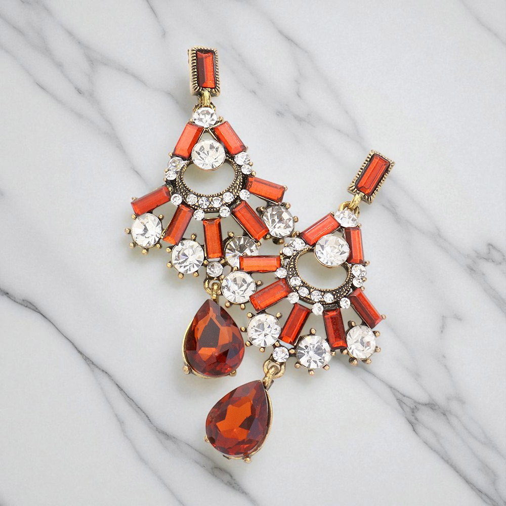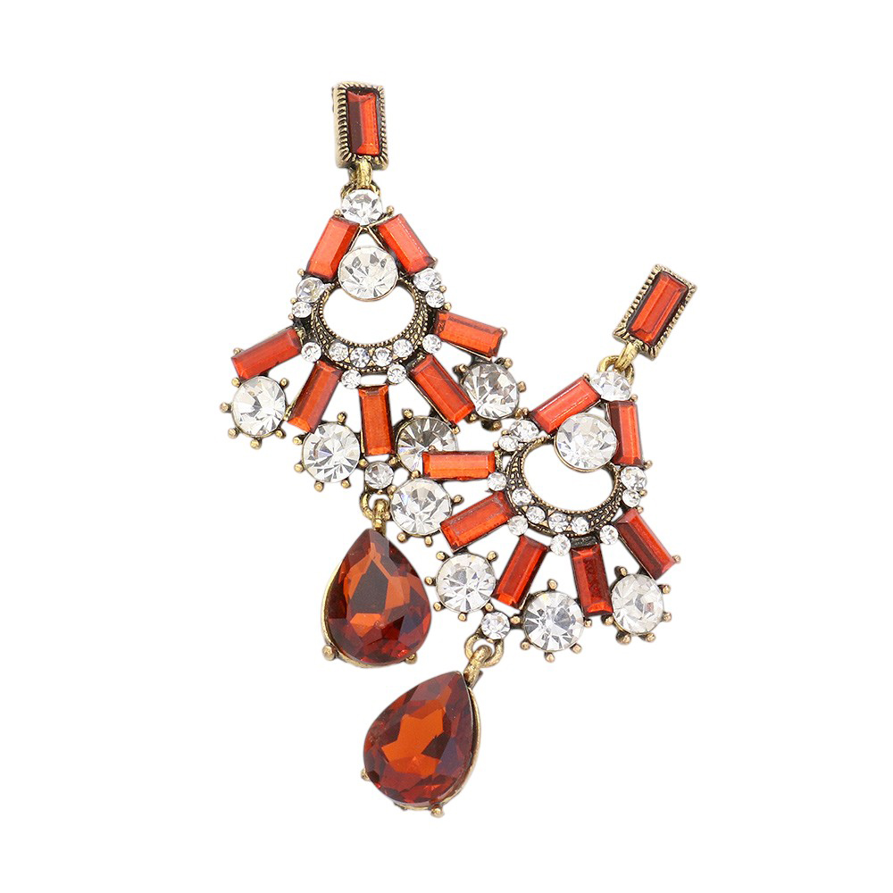 Teardrop Stone Accented Glass Stone Cluster Earrings