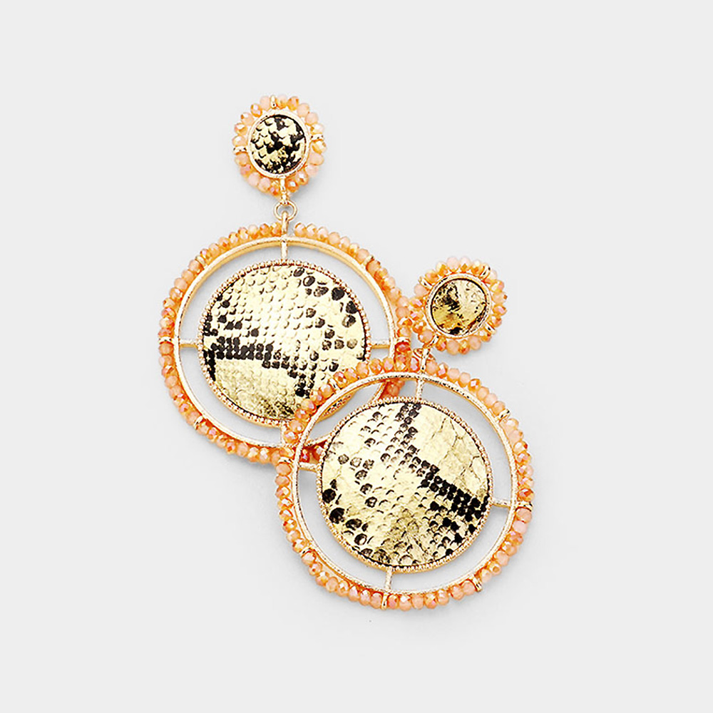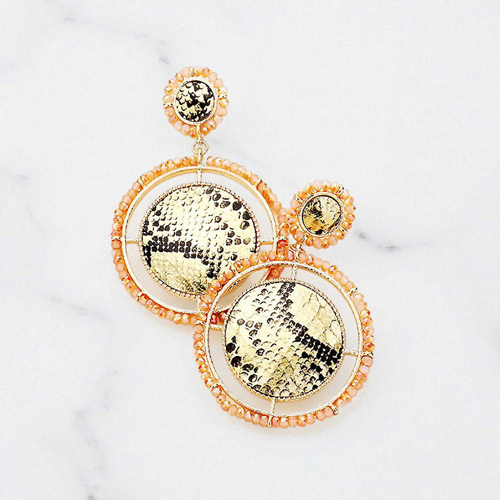 Textured Leather Round Bead Wrapped Hoop Dangle Earrings