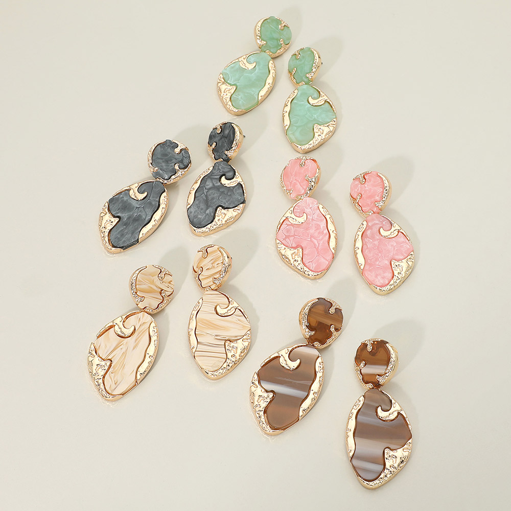 Textured Metal Frame Abstract Celluloid Acetate Drop Dangle Statement Earrings