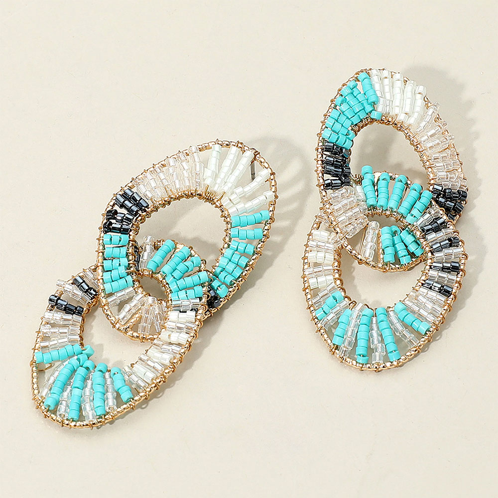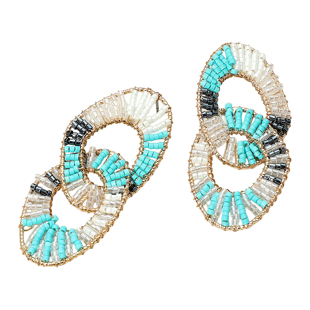 • Stand out with multi-link beaded statement earrings featuring intricate seed bead patterns and bold interlocking shapes. Lightweight yet eye-catching, these earrings bring vibrant style and artistic flair, perfect for festivals, parties, or elevating everyday outfits.
