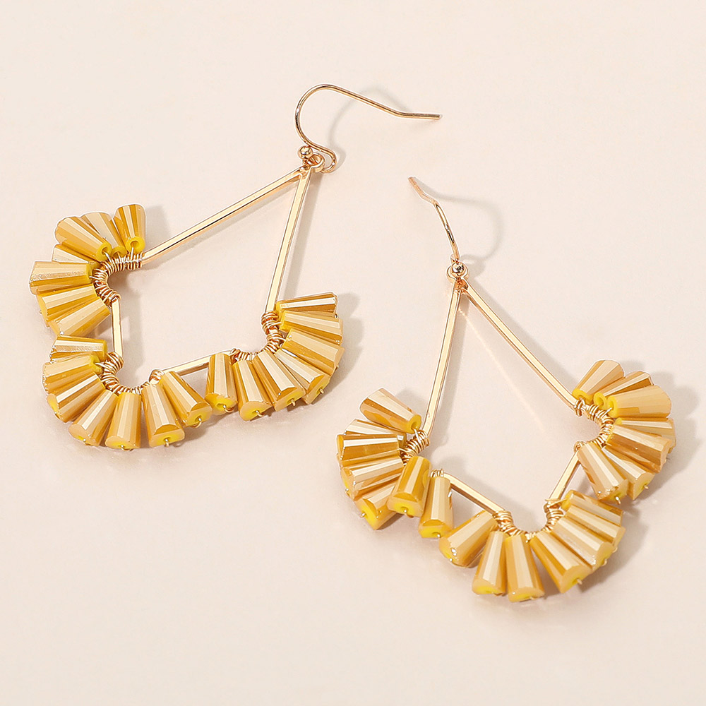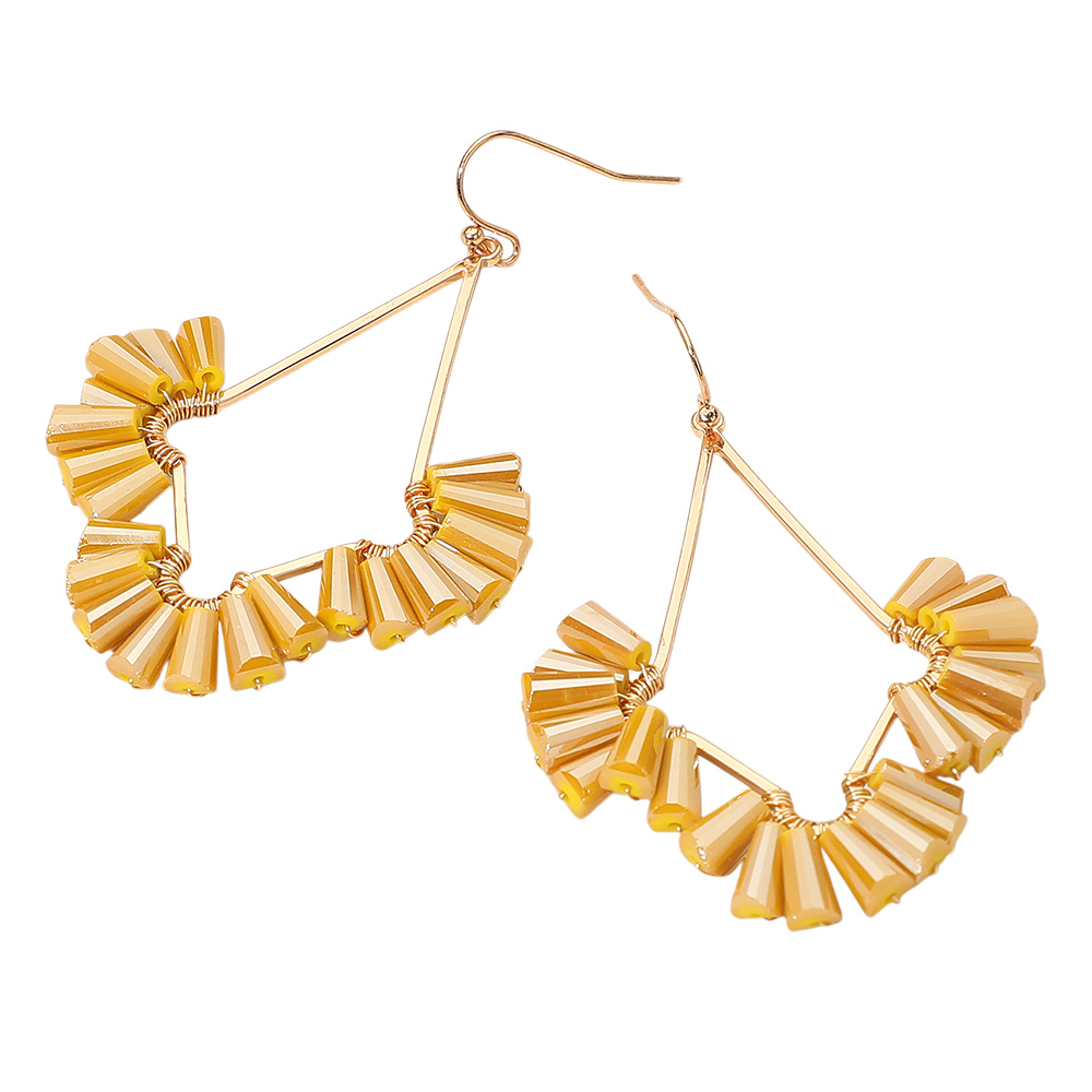 • Elevate your style with fan-shaped dangle earrings designed with clustered beads in a unique geometric silhouette. Lightweight and eye-catching, these earrings add bold character and contemporary charm to casual, party, or evening looks with effortless flair.