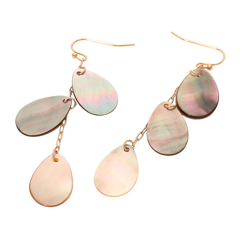 Triple Abalone Mother of Pearl Teardrop Disc Drop Chain Earrings Triple Abalone Mother of Pearl Teardrop Disc Drop Chain Earrings