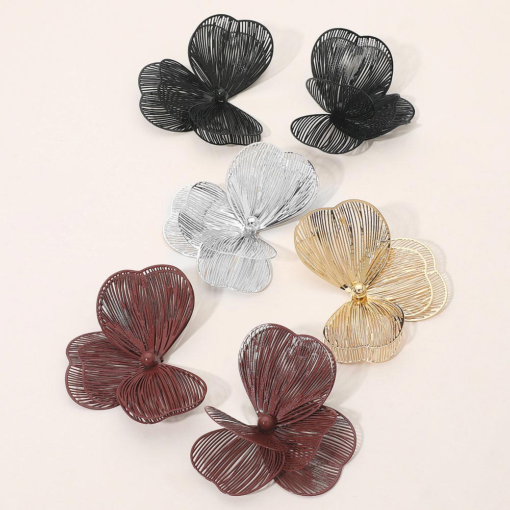 Details • Size : 2.1" X 2.5" • Post Back • Add a touch of sculptural elegance with these Modern Triple Petal Earrings. Featuring a layered petal design with a radiant finish, these earrings offer a bold yet refined statement. Perfect for formal or evening wear, they blend modern artistry with timeless sophistication. • Lead and Nickel Compliant
