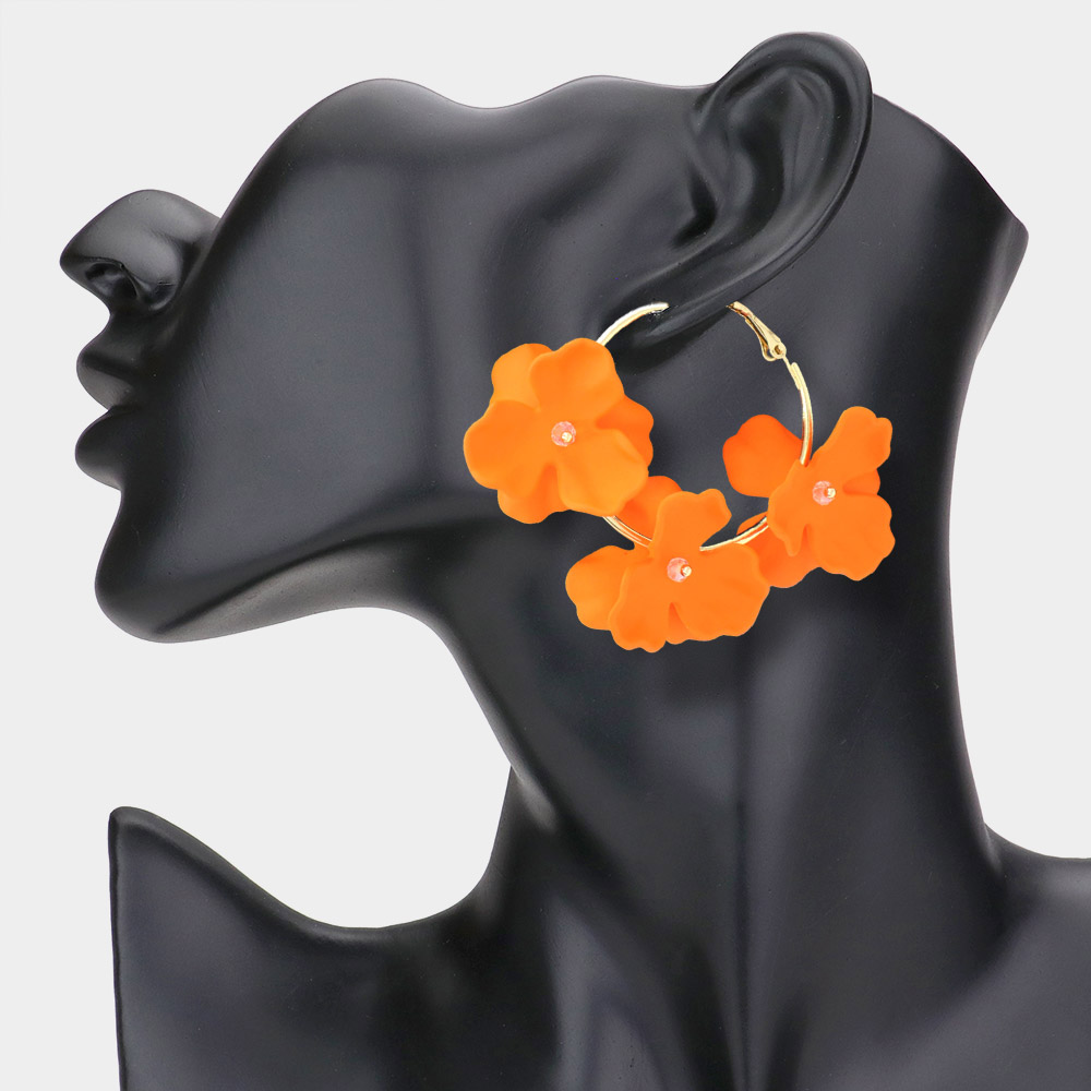 Triple Metal Cut Out Flower Hoop Statement Earrings