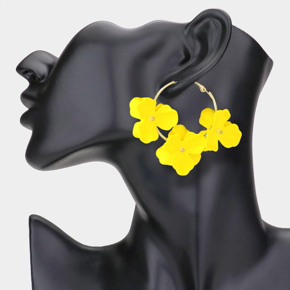 Triple Metal Cut Out Flower Hoop Statement Earrings