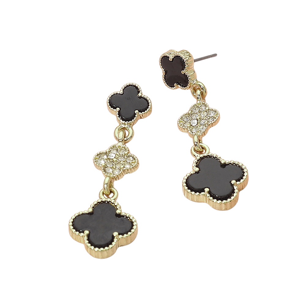 Details • Size : 0.6" X 1.8" • Post Back • Elegant drop earrings designed with linked quatrefoil motifs for a graceful, eye-catching silhouette. This refined style adds movement and shine, making it ideal for everyday wear or special occasions. A versatile accessory that pairs beautifully with modern outfits, classic looks, and curated jewelry collections for boutiques and gifting displays. • Lead and Nickel Compliant