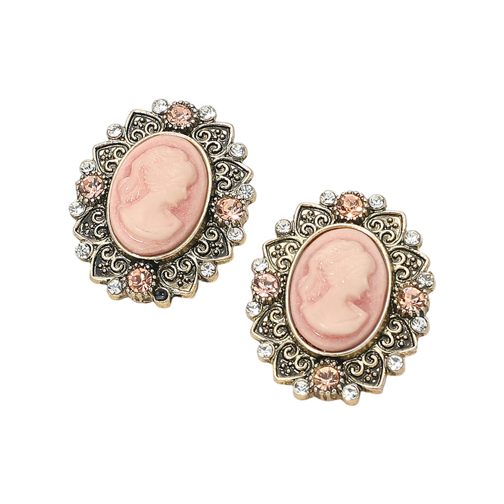 Details • Size : 1" X 1.25" • Post Back • Add a touch of timeless elegance with these vintage cameo oval stud earrings featuring an ornate frame and intricate detailing. Perfect for classic or formal looks, these earrings capture antique-inspired charm that complements both modern and traditional styles beautifully. • Lead and Nickel Compliant