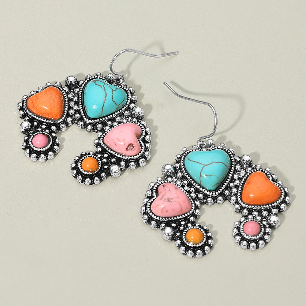 Details • Size : 1.5" X 1.6" • Fish Hook Back • Add artistic flair to your look with these boho heart gemstone drop earrings. Featuring a mix of vibrant stones in a vintage-inspired setting, they bring color, charm, and personality to any outfit—perfect for free-spirited styles and statement accessorizing. • Lead and Nickel Compliant