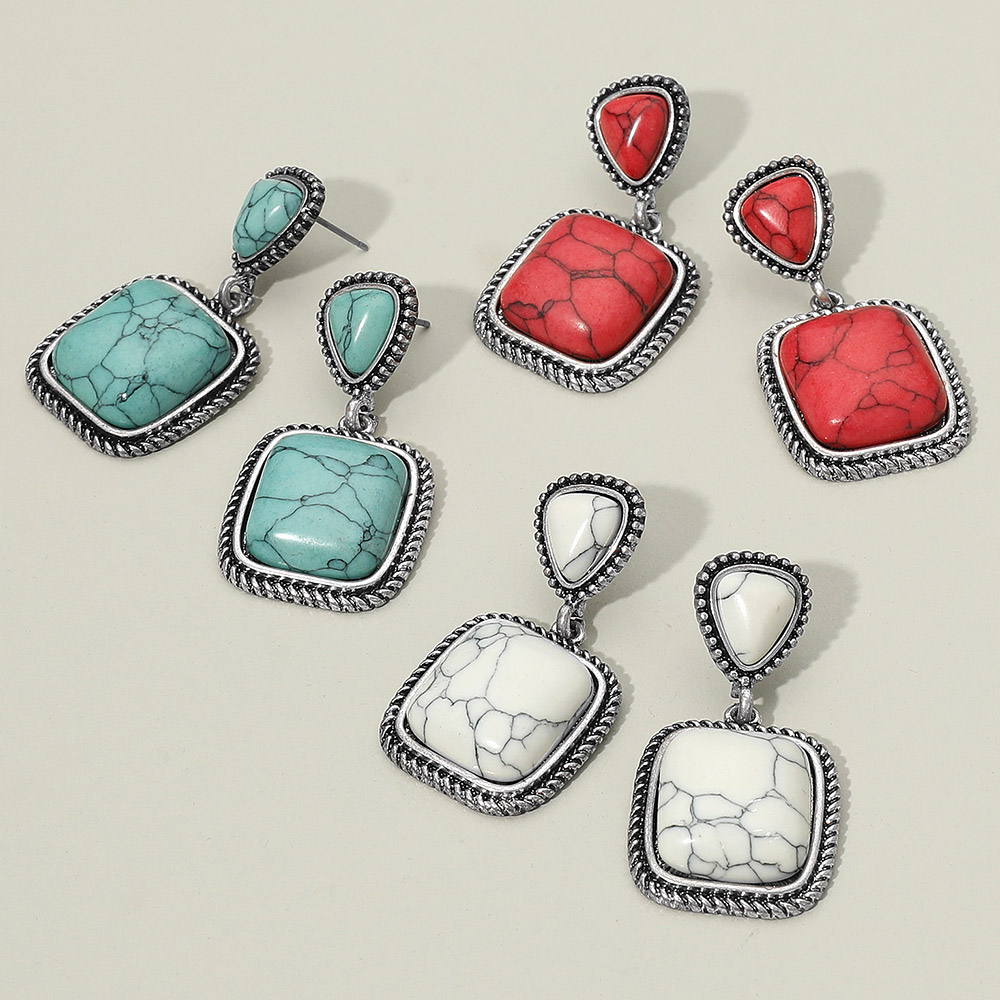 Western Antique Square Stone Dangle Earrings Western Antique Square Stone Dangle Earrings Western Antique Square Stone Dangle Earrings