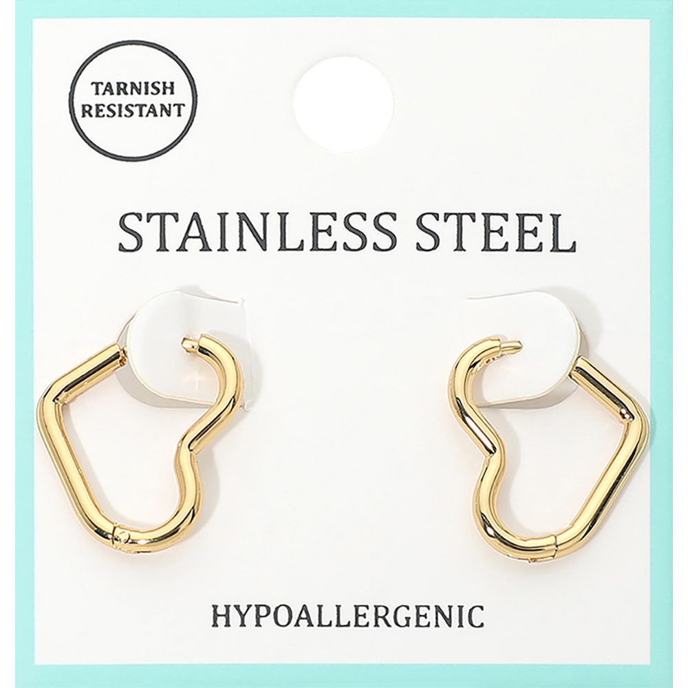 Details • Size : 0.7" X 0.75" • Huggie Back • Tarnish Resistant • Stylish heart outline huggie earrings with a smooth, modern silhouette designed for everyday comfort and effortless layering. A versatile jewelry staple that transitions easily from casual looks to elevated outfits, offering a clean, romantic statement that appeals to trend-focused and gift-ready collections. • Hypoallergenic • Stainless Steel