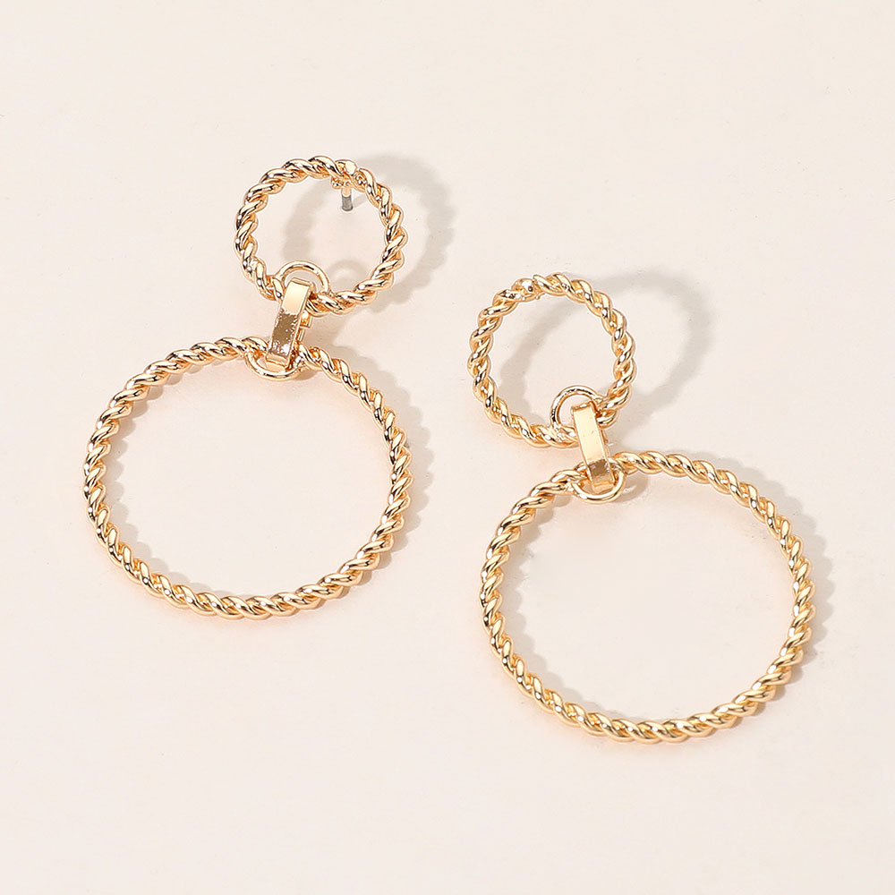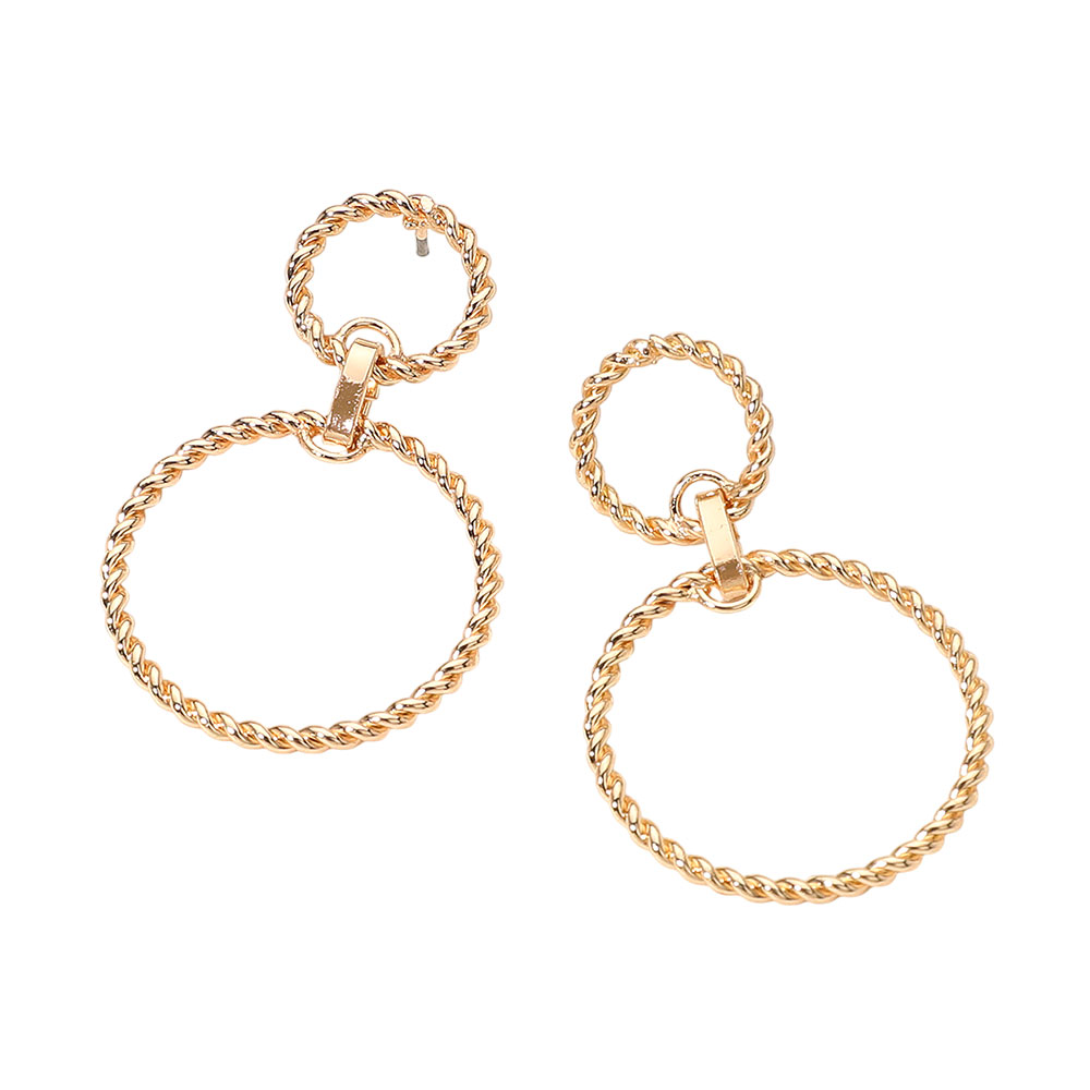 Details • Size : 1" X 1.6" • Post Back • These elegant double hoop earrings feature a twisted rope-inspired design, creating a chic and modern statement look. Perfect for both casual and formal occasions, they add a touch of sophistication and movement, making them an effortless accessory for any style ensemble. • Lead and Nickel Compliant