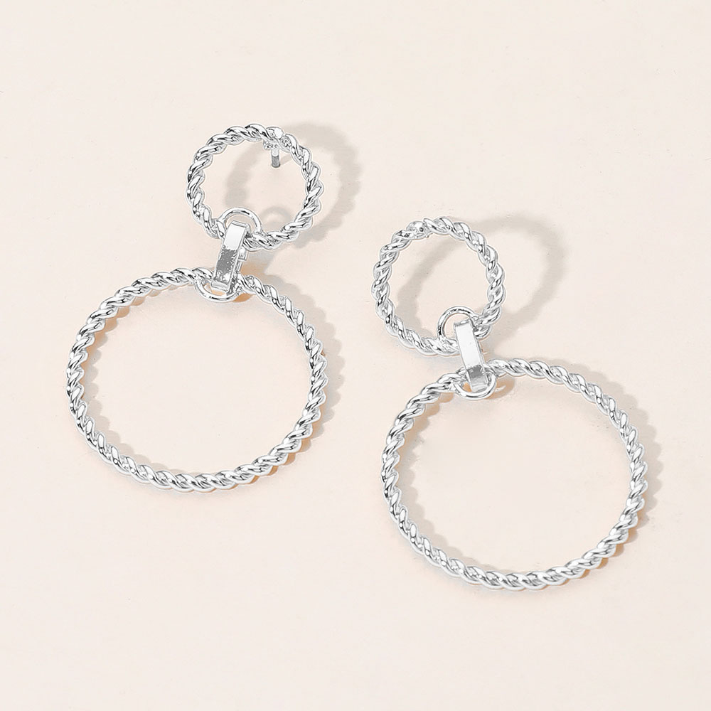 Twisted Metal Wire Double Hoop Link Drop Earrings