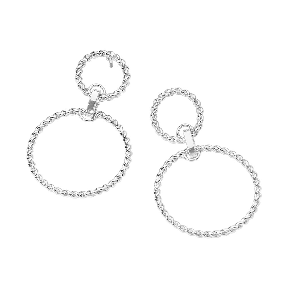 • These elegant double hoop earrings feature a twisted rope-inspired design, creating a chic and modern statement look. Perfect for both casual and formal occasions, they add a touch of sophistication and movement, making them an effortless accessory for any style ensemble.