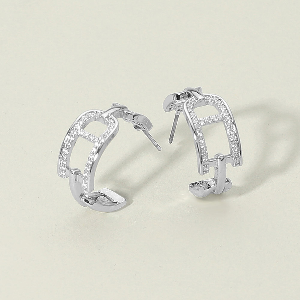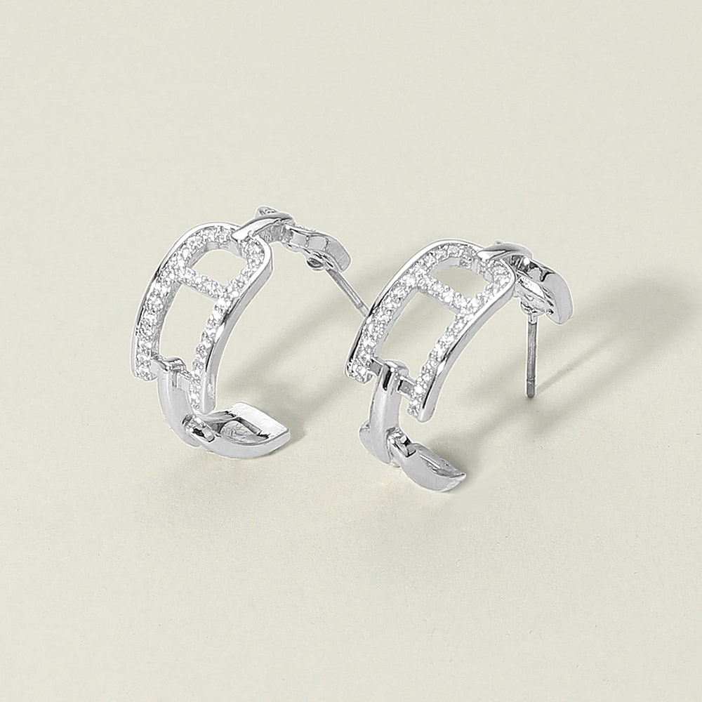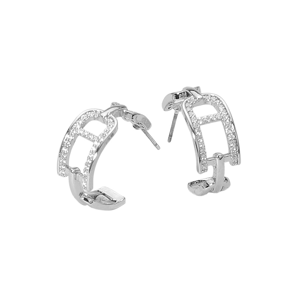 Details • Size : 0.8" X 0.8" X 0.3" • Post Back • Add modern elegance to your jewelry collection with these geometric hoop earrings featuring crystal accents. Their unique openwork design blends contemporary style with timeless sparkle, making them perfect for casual wear, evening looks, or gifting. • CZ Cubic Zirconia • Gold Dipped