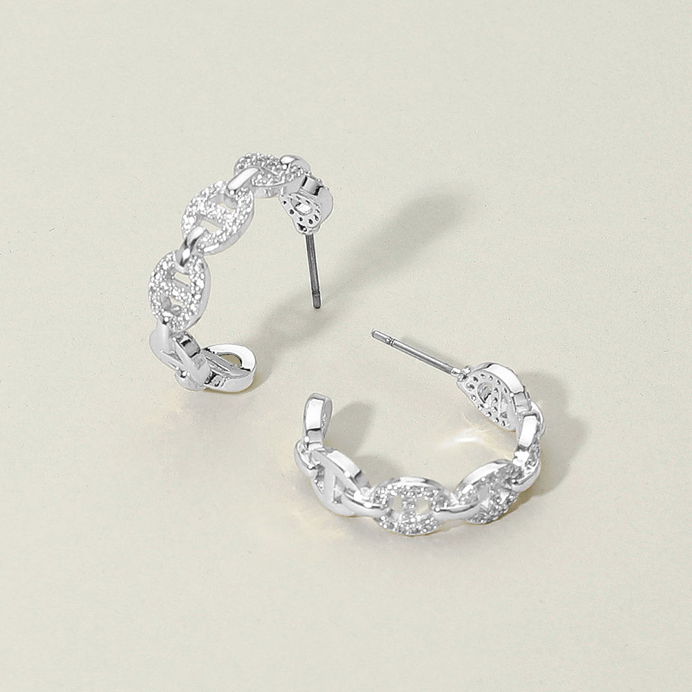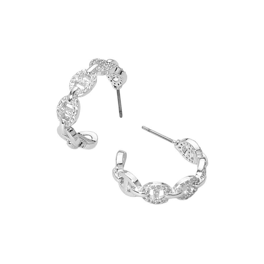 Details • Size : 0.8" X 0.8" X 0.2" • Post Back • Elevate your everyday style with these mariner chain-link hoop earrings adorned with sparkling crystal accents. Their bold yet elegant design adds a touch of modern sophistication, making them perfect for casual wear, work outfits, or special occasions. • CZ Cubic Zirconia • Gold Dipped