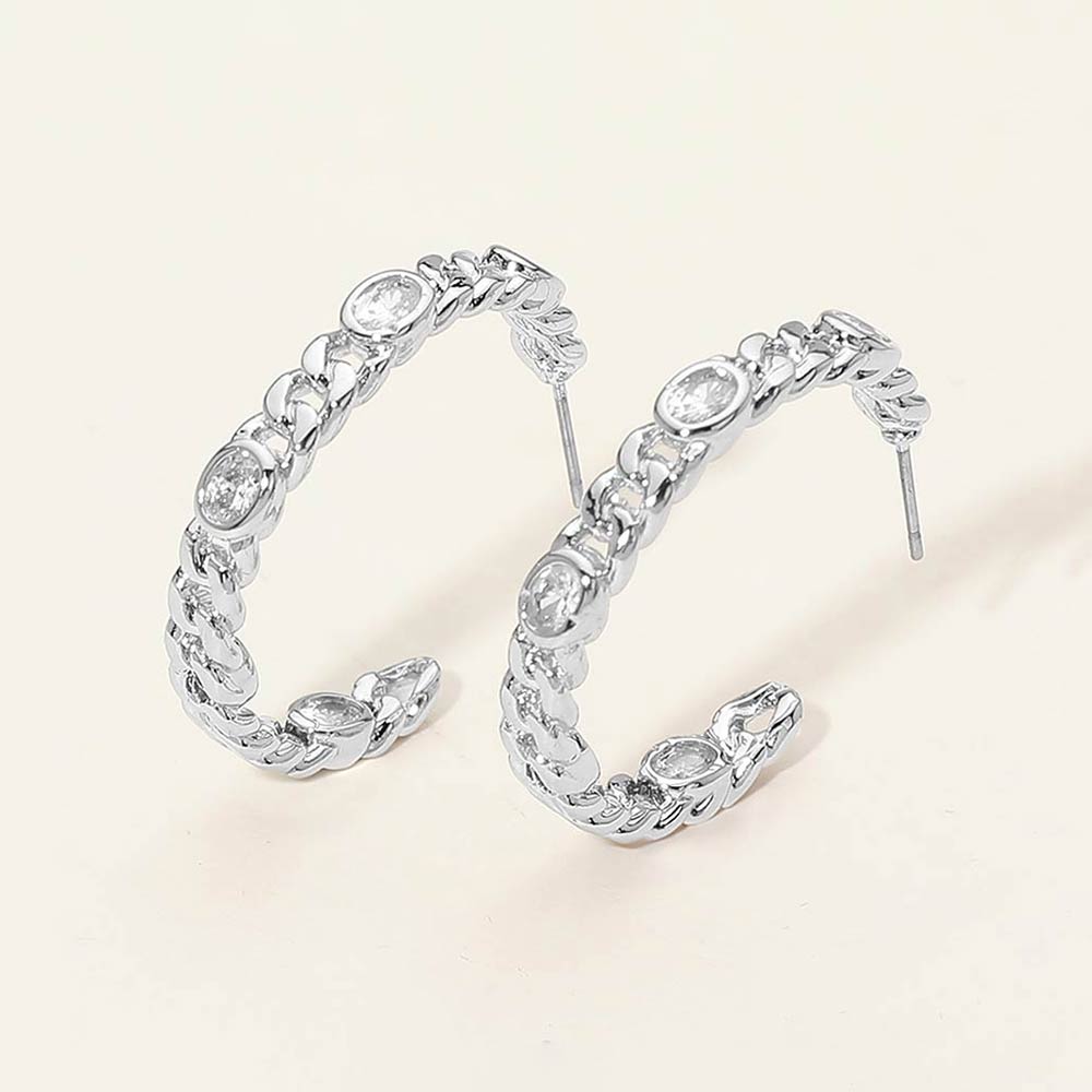 Details • Size : 1.2" X 1.2" X 0.2" • Post Back • Stylish chain-inspired hoop earrings accented with sparkling cz crystal details for a refined yet modern look. Designed to elevate everyday outfits or complement evening styles, these hoops offer a balanced mix of elegance and edge, making them a versatile choice for trend-forward accessory collections. • CZ Cubic Zirconia • Gold Dipped