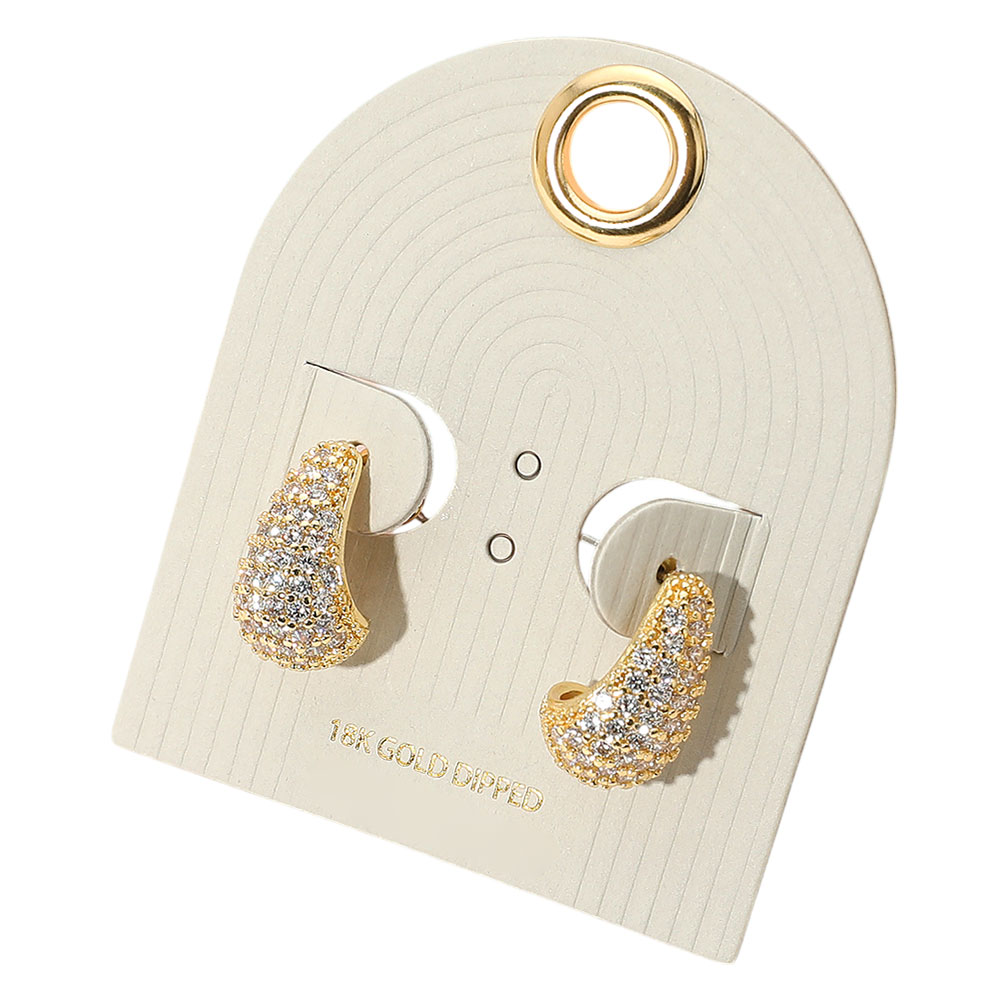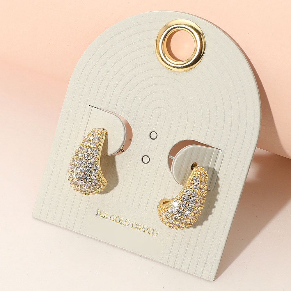 18K Gold Dipped Stone Paved Teardrop Earrings