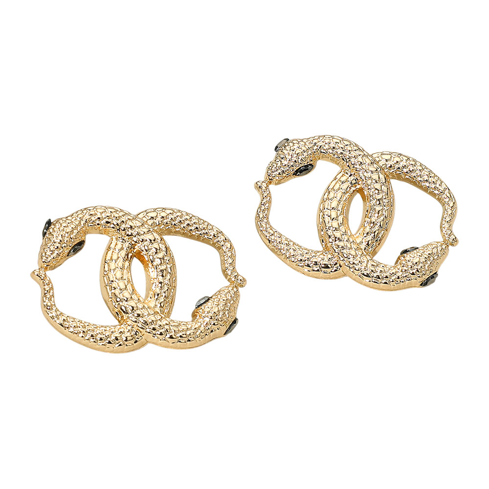 • Make a striking statement with these interlocking snake stud earrings, showcasing a bold intertwined design that radiates power and sophistication. The detailed texture and sculptural form bring a touch of mystique and modern allure, perfect for a fierce yet elegant look.