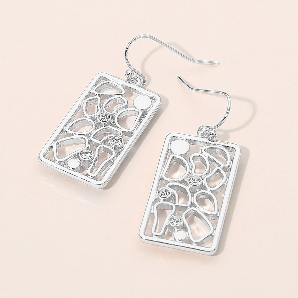 Rhinestone Accent Abstract Openwork Rectangle Drop Dangle Earrings