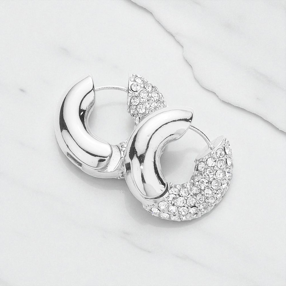 2Pairs - Mixed Crystal Floral Moon Metal Stud Earrings