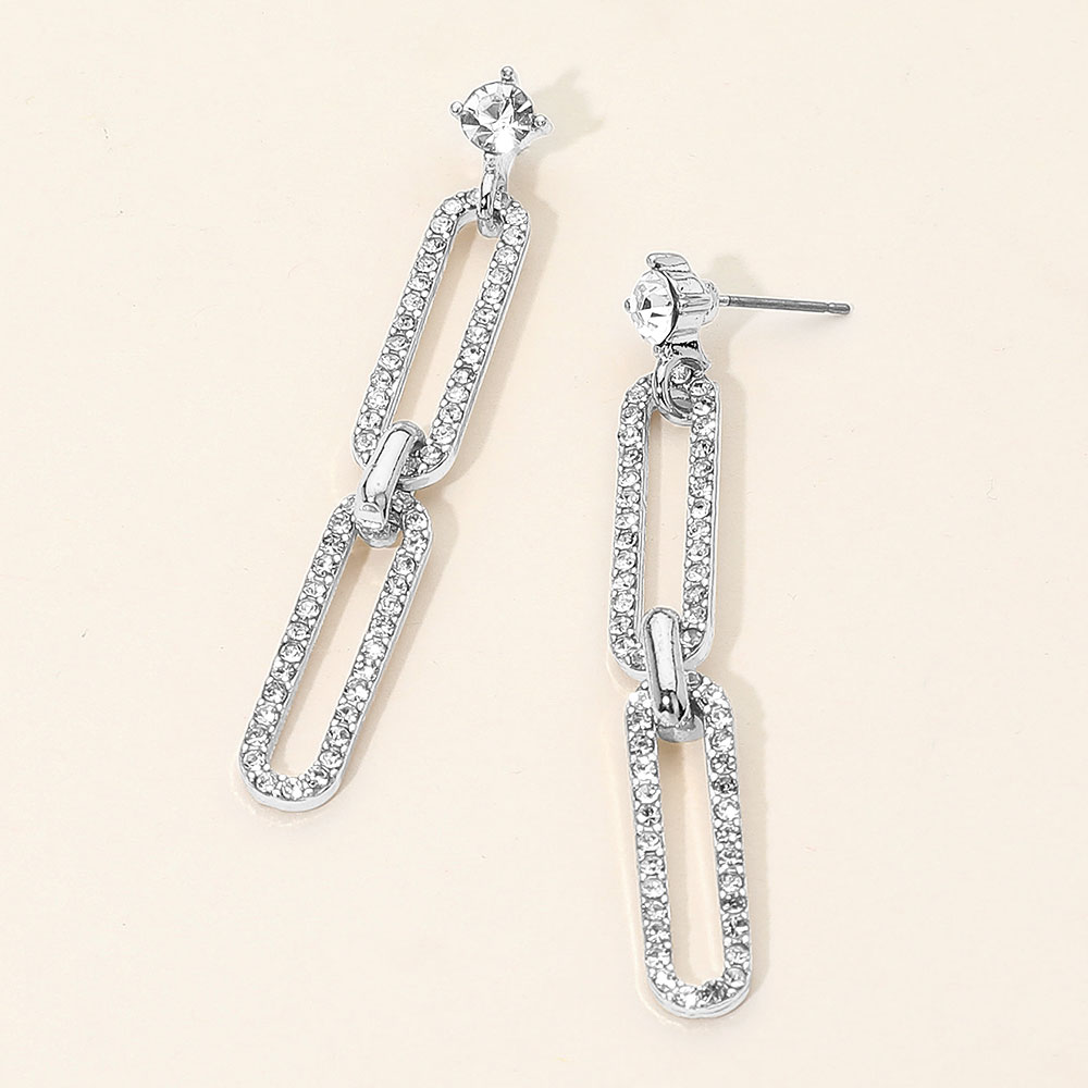 • Turn up the sparkle with these rhinestone chain link drop earrings, designed with interlocking links that shimmer beautifully with every movement. Perfect for both casual chic and evening glamour, they bring a refined, modern edge to any jewelry collection.