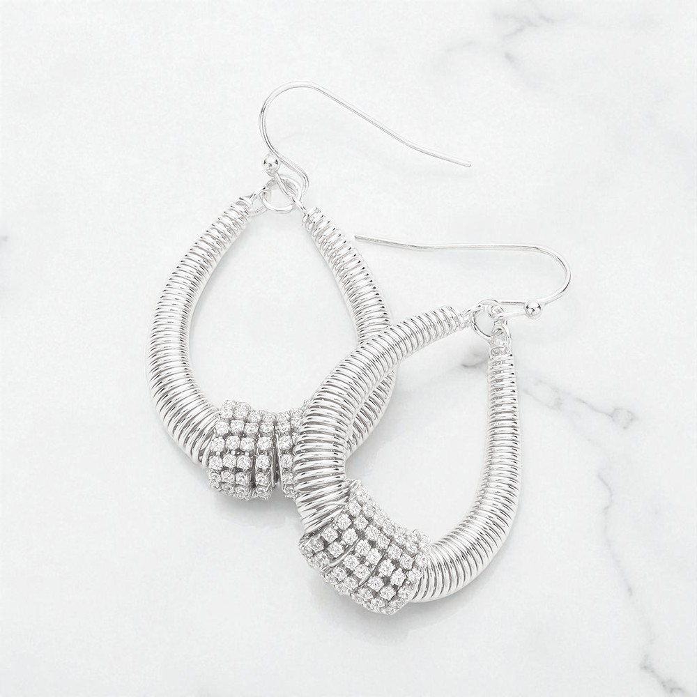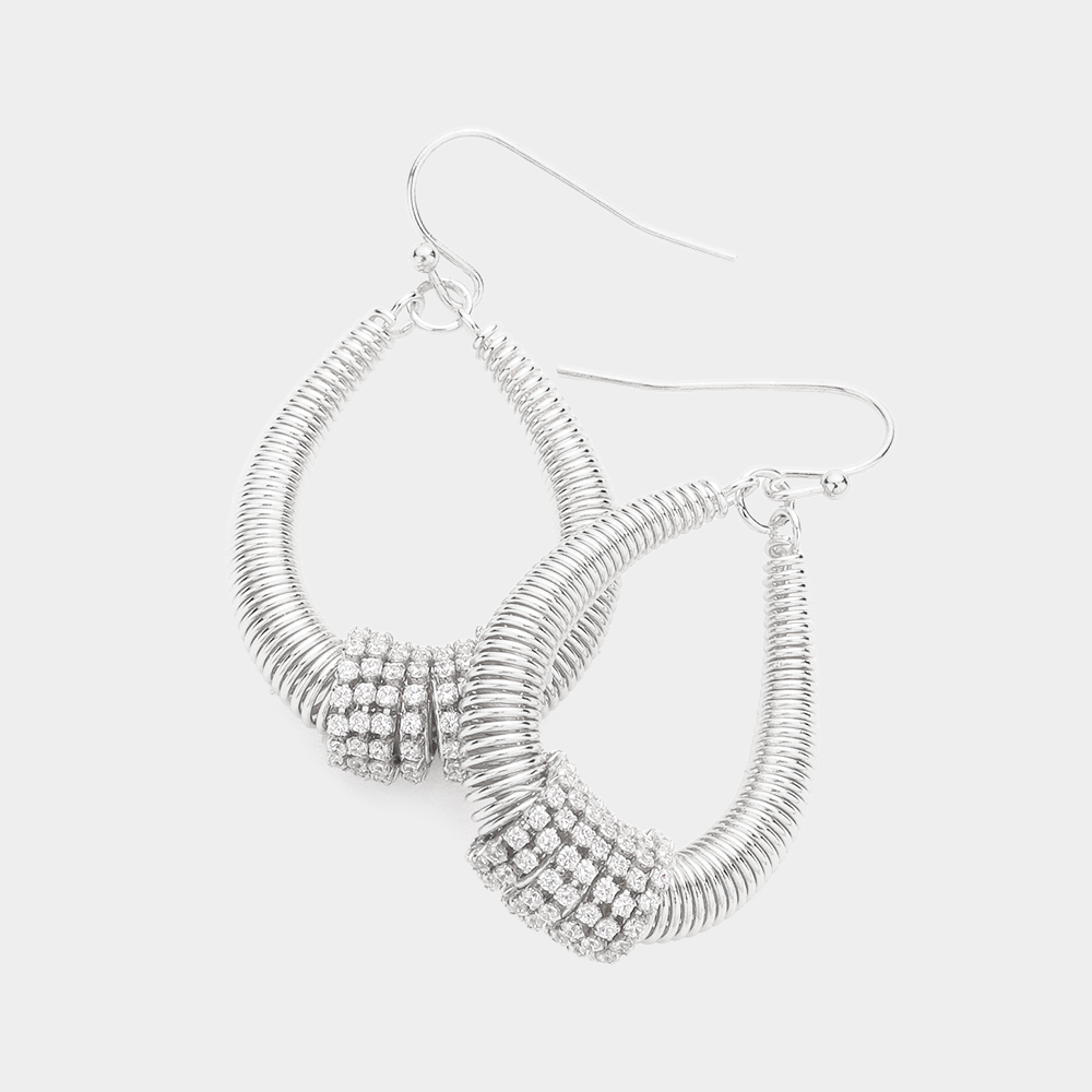 Rhinestone Ring Pointed Open Teardrop Dangle Earrings