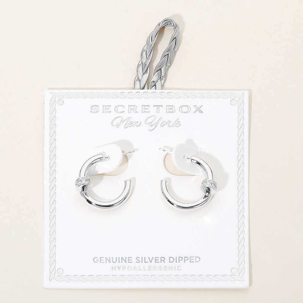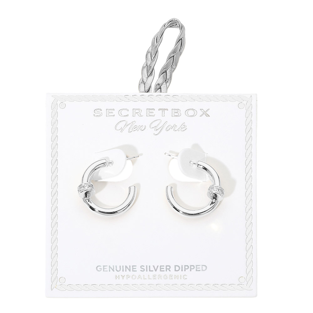 SECRET BOX_Genuine Silver Dipped Stone Pave Mini Nail Hoop Earrings SECRET BOX_Genuine Silver Dipped Stone Pave Mini Nail Hoop Earrings SECRET BOX_Genuine Silver Dipped Stone Pave Mini Nail Hoop Earrings