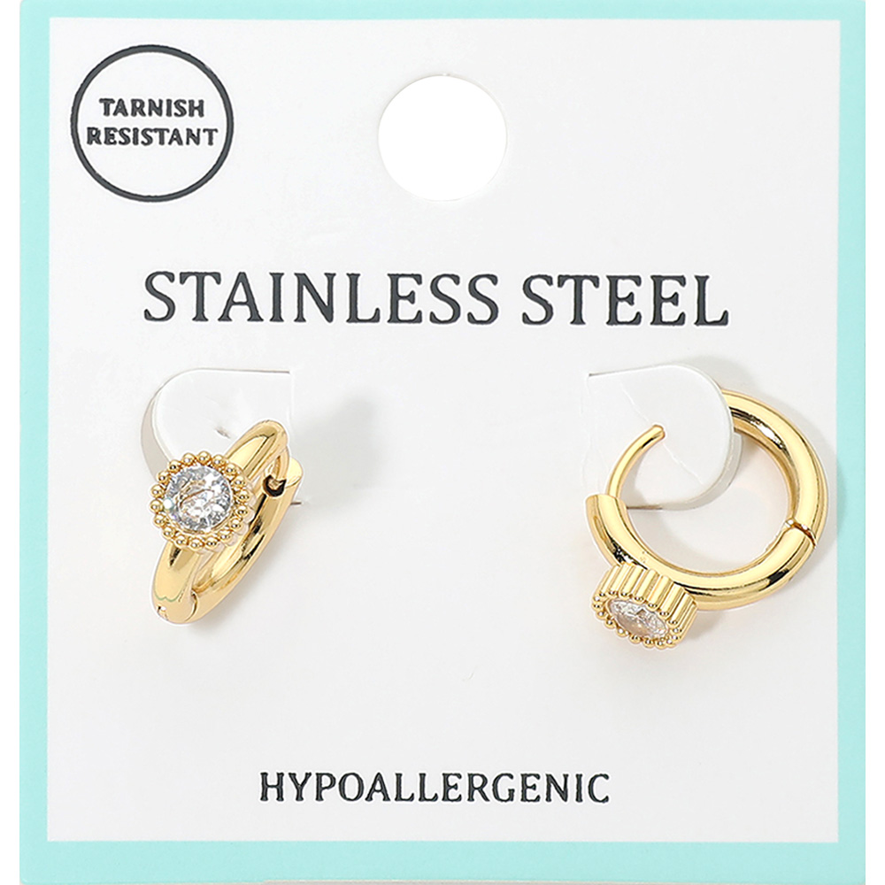 Stainless Steel Round Stone Accent Mini Huggie Hoop Earrings Stainless Steel Round Stone Accent Mini Huggie Hoop Earrings Stainless Steel Round Stone Accent Mini Huggie Hoop Earrings