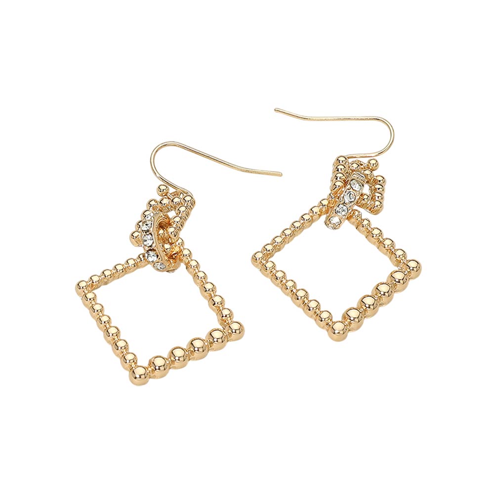 Stone Pave Linked Metal Beaded Square Drop Earrings