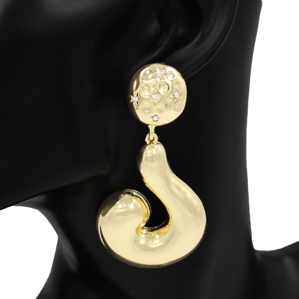 Details • Size : 1.5" X 3" • Post Back • Sculptural abstract drop earrings featuring a bold curved silhouette that brings modern flair to any look. Their fluid shape and standout design make them a striking accessory for both elevated outfits and everyday style, adding an artistic touch with effortless impact. • Lead and Nickel Compliant