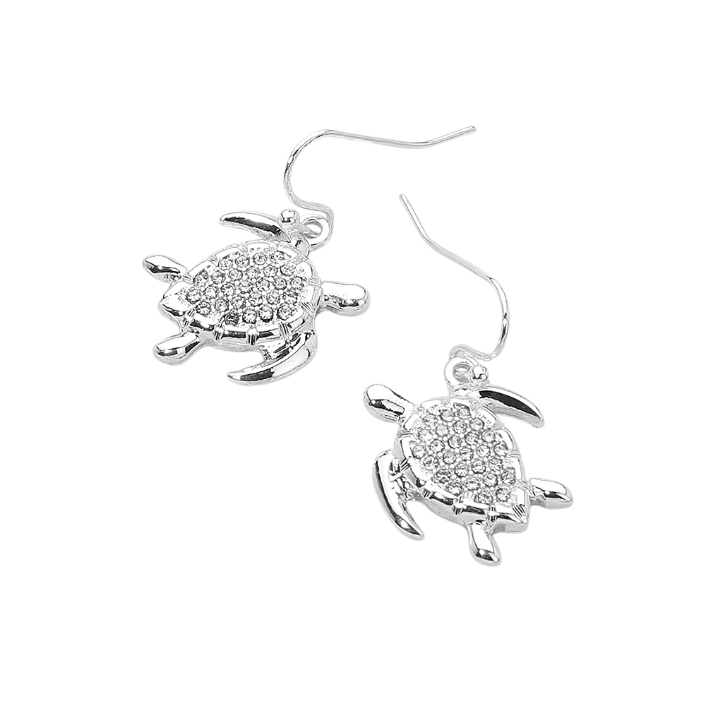 Details • Size : 0.7" X 1.1" • Fish Hook Back • Charming turtle dangle earrings featuring a detailed shell design and graceful hook style. A playful ocean-inspired accessory that adds movement and personality to everyday outfits, vacation looks, and giftable jewelry collections, perfect for boutiques seeking fun, themed statement pieces. • Lead and Nickel Compliant