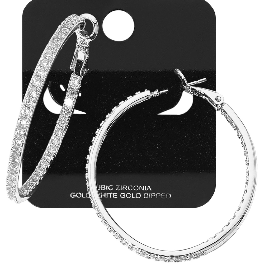 White Gold Dipped CZ Stone Paved Hoop Earrings White Gold Dipped CZ Stone Paved Hoop Earrings