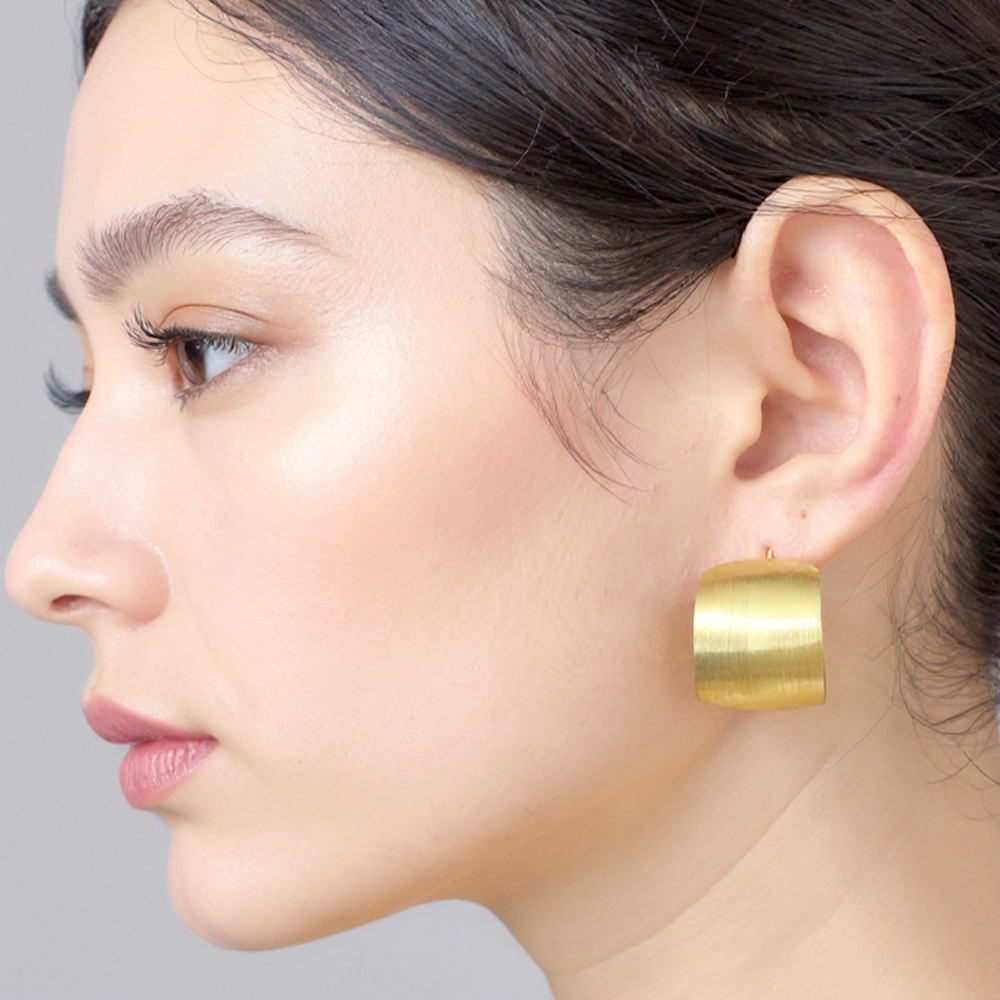 • Bold and stylish wide hoop earrings with a sleek brushed finish, crafted in a contemporary curved design. Lightweight yet impactful, these earrings are perfect for elevating everyday outfits or adding a polished statement touch to evening looks. A versatile accessory for any jewelry collection.