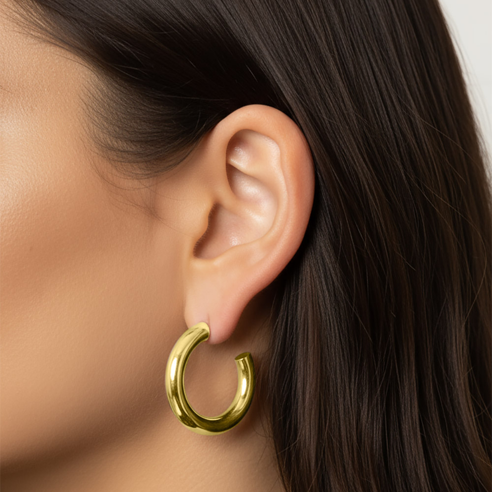 14K Gold Dipped Small Chunky Open Hoop Earrings