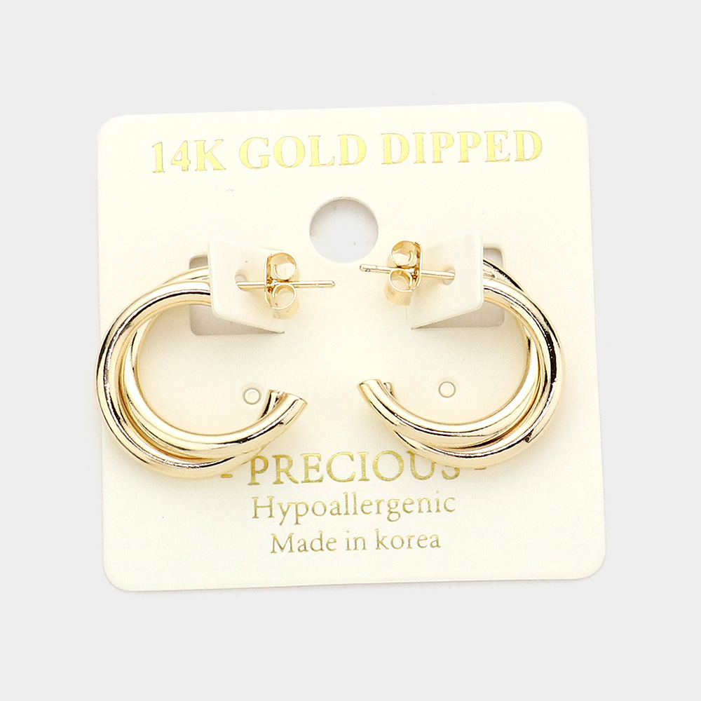 14K Gold Dipped Double Layered Metal Half Hoop Earrings