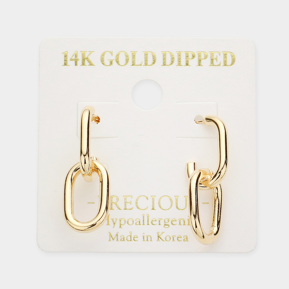 14K Gold Dipped Double Open Metal Oval Link Dangle Earrings