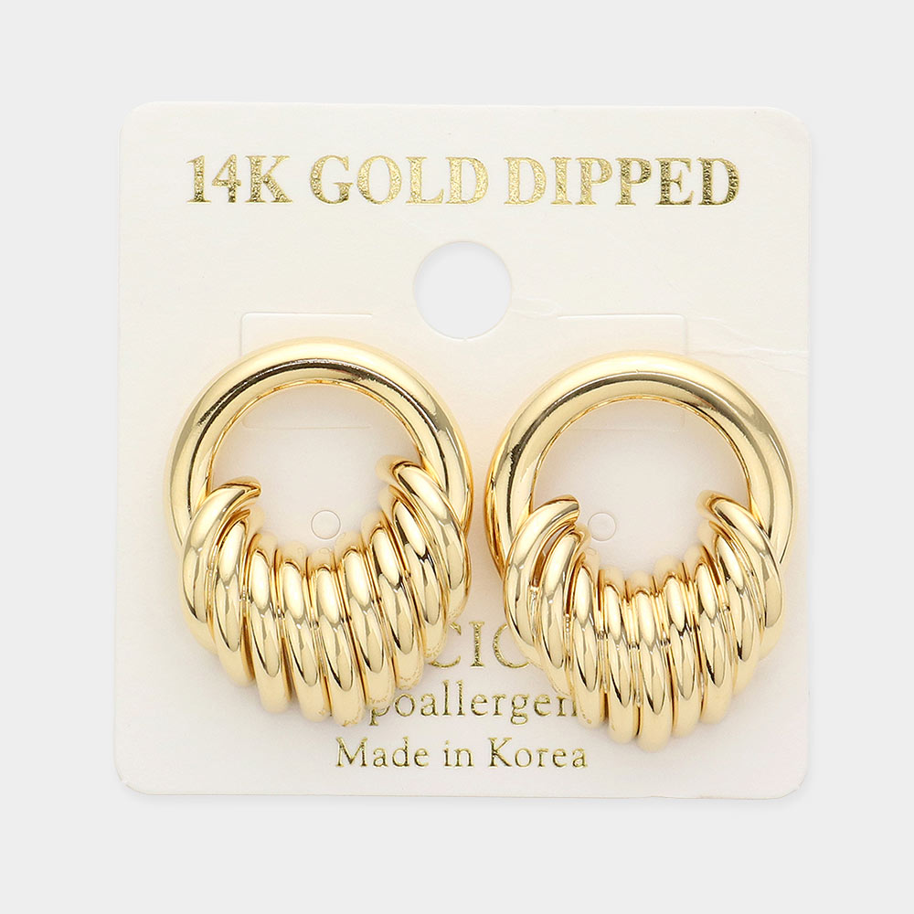 14K Gold Dipped Hypoallergenic Twisted Oval Hoop Earrings