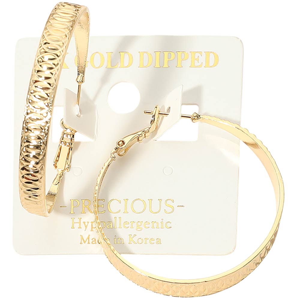 14K Gold Dipped Hypoallergenic Textured Hoop Earrings 14K Gold Dipped Hypoallergenic Textured Hoop Earrings