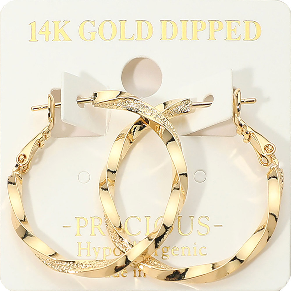 14K Gold Dipped Hypoallergenic Textured Twisted Hoop Earrings
