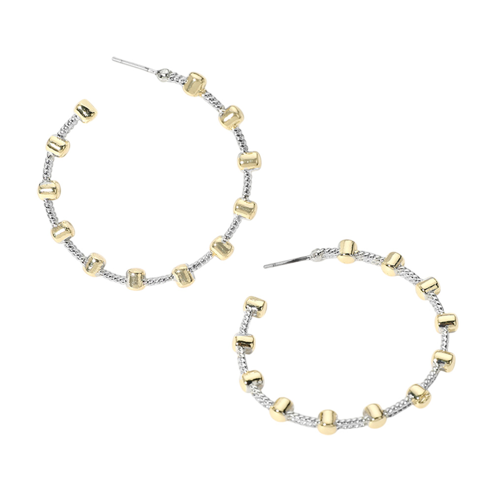 Details • Size : 1.7" X 1.7" • Post Back • Add charm to your look with these beaded hoop statement earrings featuring a detailed circular design that blends texture and shine. Lightweight and easy to wear, they elevate casual outfits and dressier styles alike, offering a versatile accessory perfect for daily wear or thoughtful gifting. • Gold Dipped