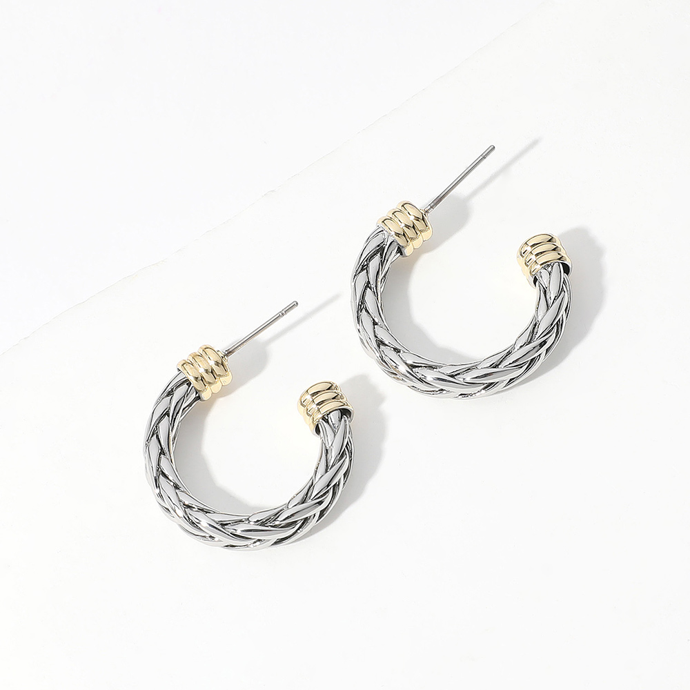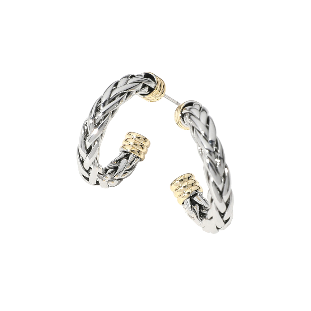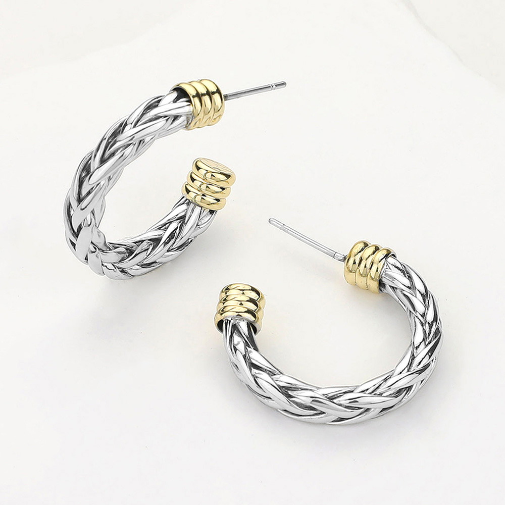 Details • Size : 1" X 1" X 0.2" • Post Back • Update your look with these braided open hoop statement earrings featuring a woven texture and modern open silhouette. Lightweight and easy to wear, they bring subtle dimension to everyday outfits and refined ensembles alike, making them a versatile accessory perfect for daily styling or thoughtful gifting. • Gold Dipped