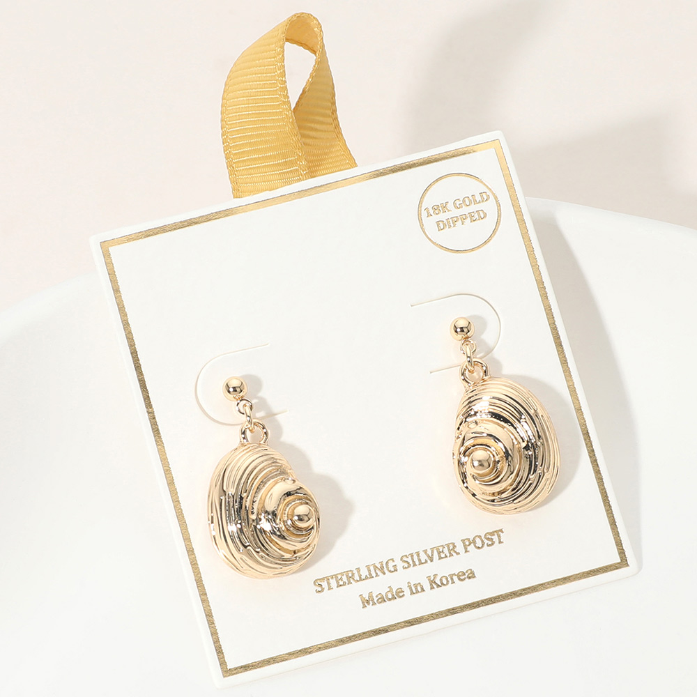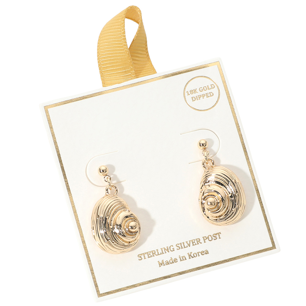 18K Gold Dipped Spiral Shell Drop Dangle Earrings