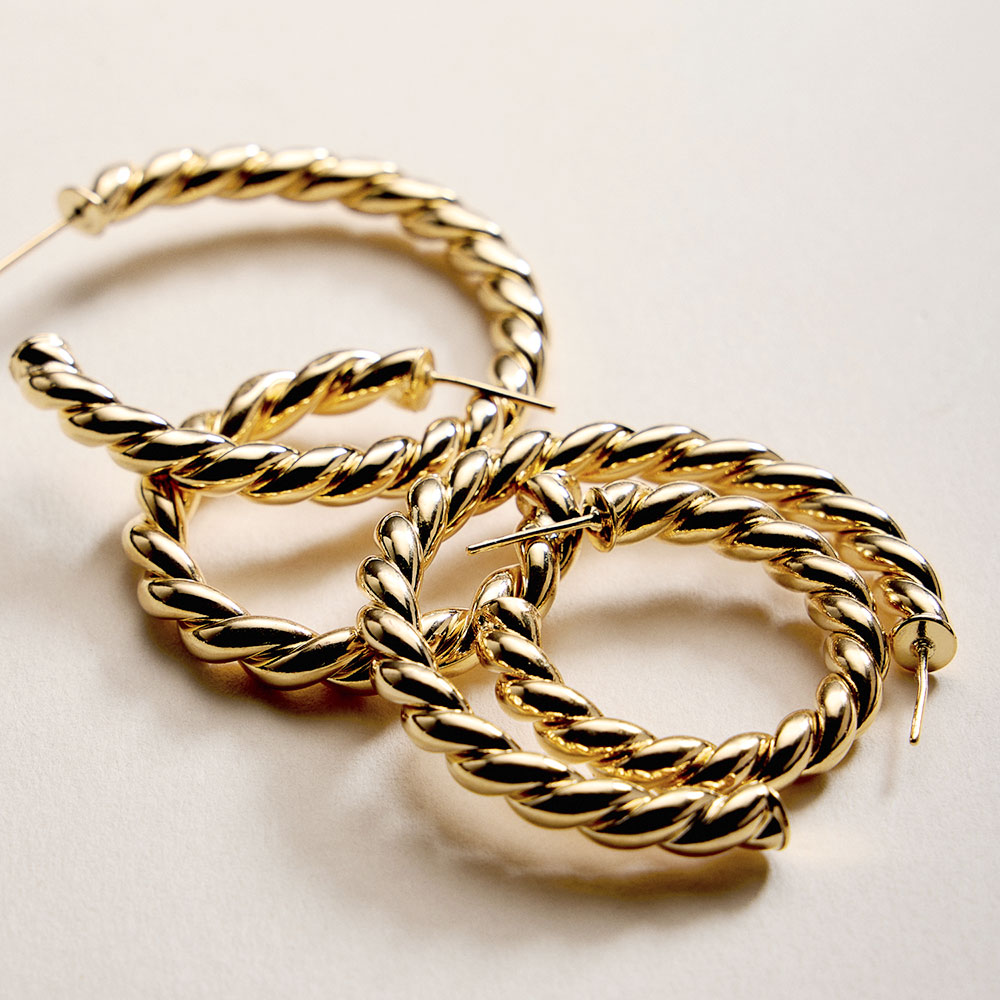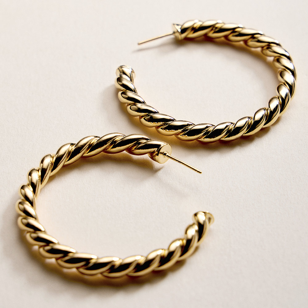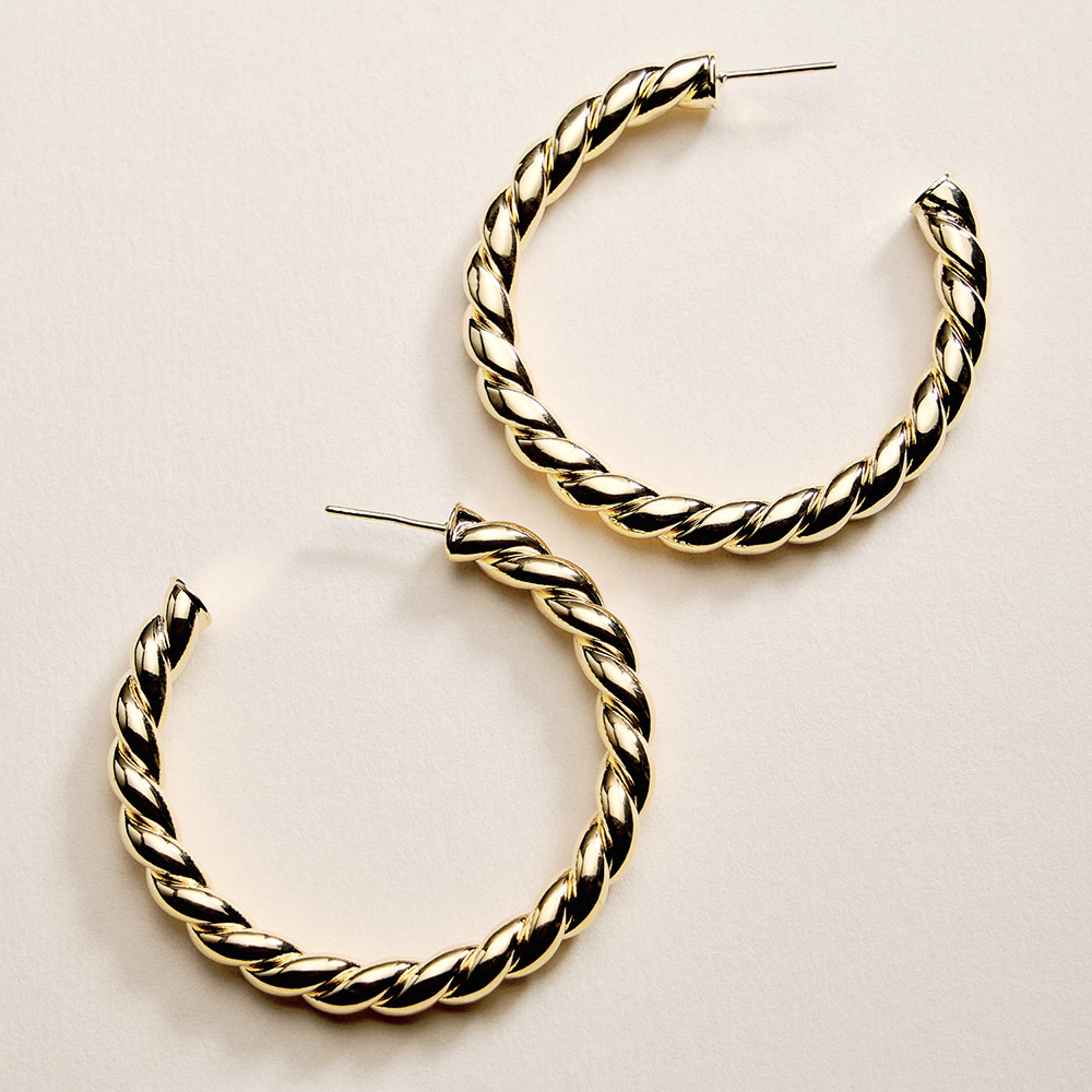 • Bold twisted hoop earrings featuring a rope-inspired design that adds texture and movement to any outfit. A timeless silhouette with a modern edge, perfect for everyday wear or elevated styling, ideal for gifting, layering, or making a confident statement with effortless versatility.