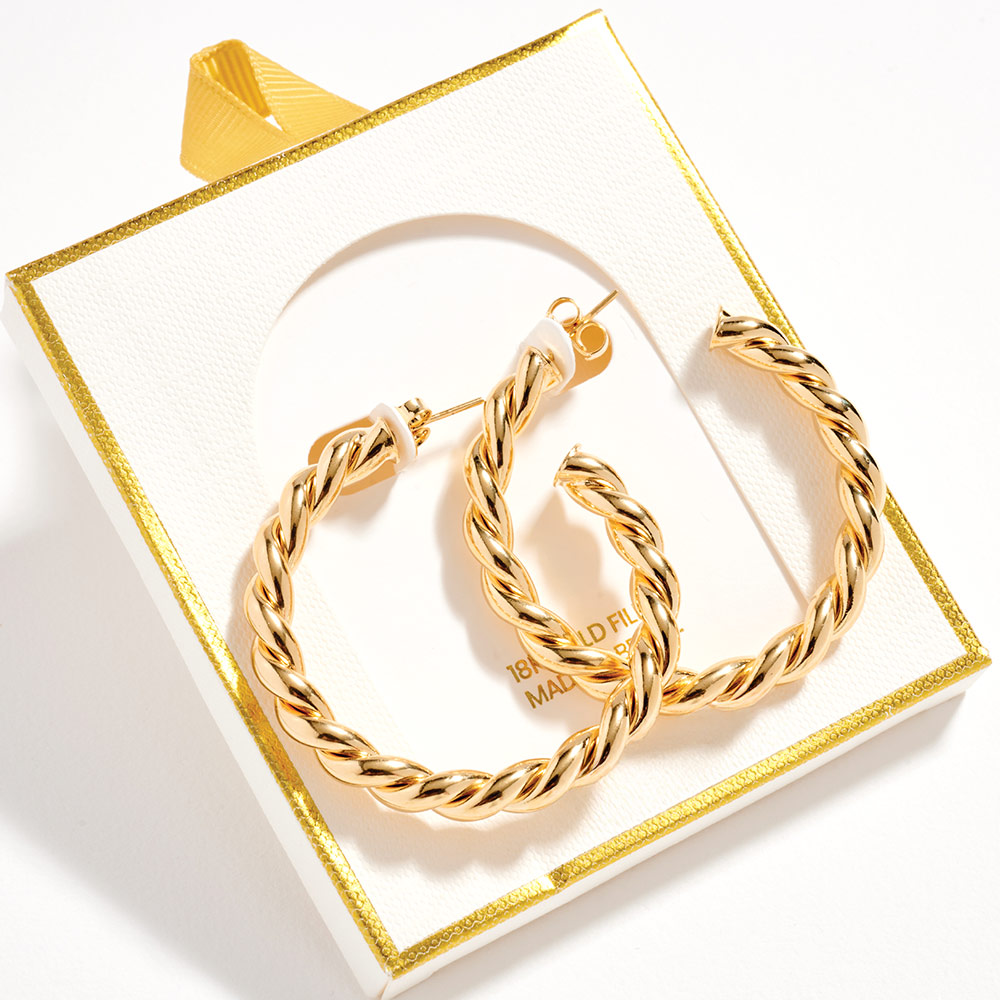 18K Gold Filled Chunky Twisted Hoop Earrings