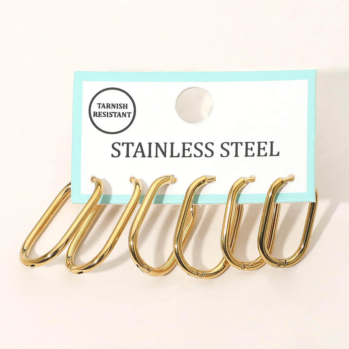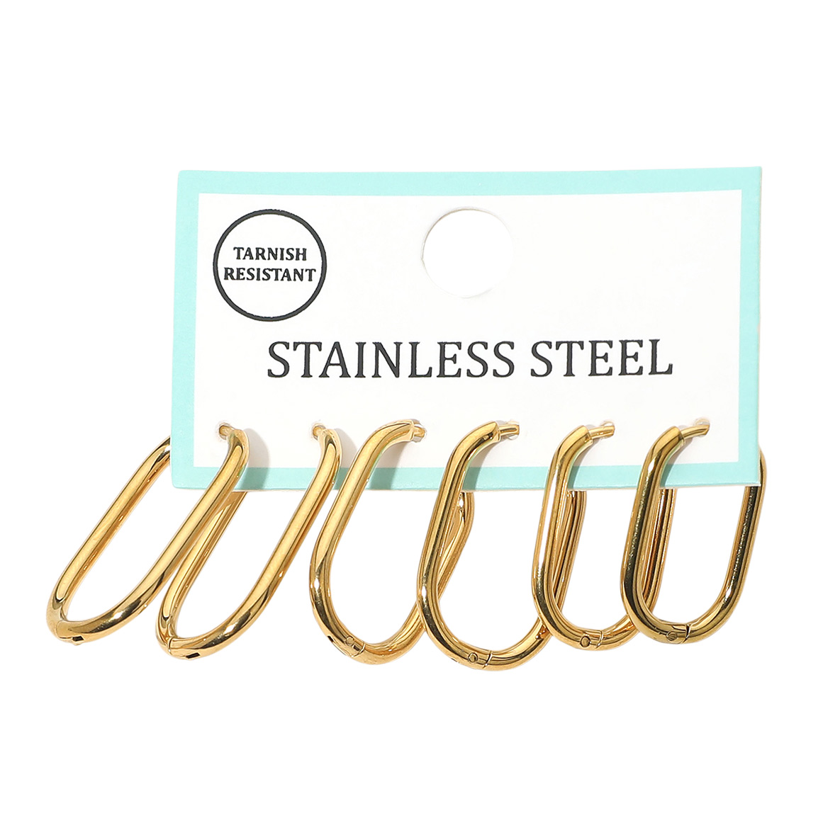 3Pairs - Stainless Steel Oval Huggie Hoop Earring Set