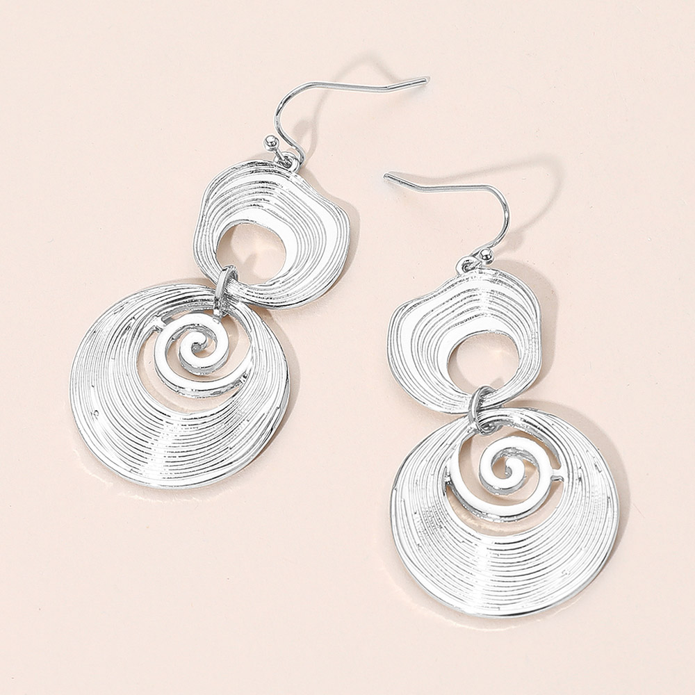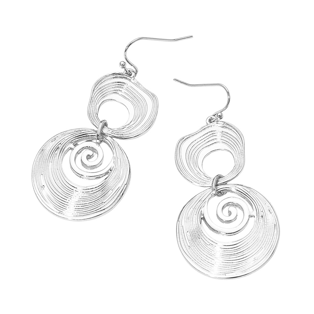 • Add a bold artistic flair with these abstract spiral drop earrings featuring textured concentric circles and a unique swirling design. Lightweight and statement-making, they effortlessly elevate both casual and dressy outfits with their creative, sculptural charm.