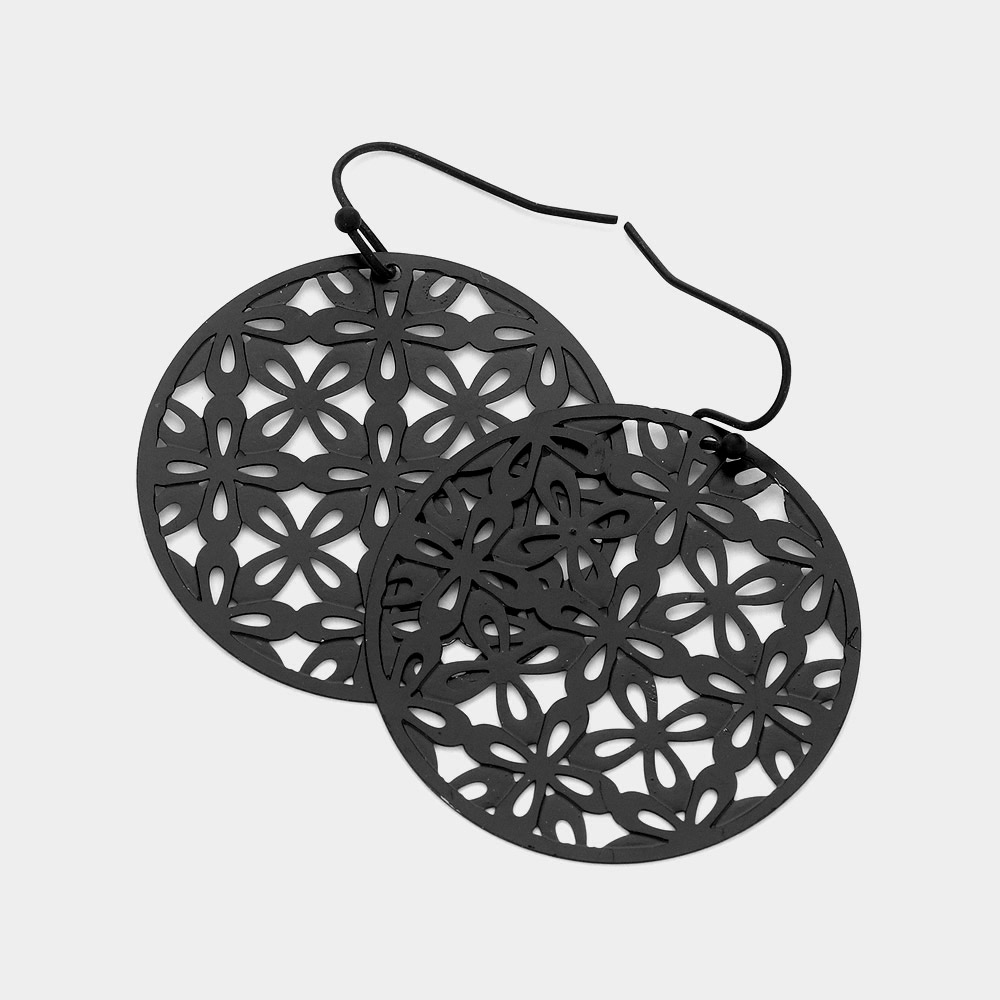 Abstract Pattern Circle Metal Filigree Dangle Earrings