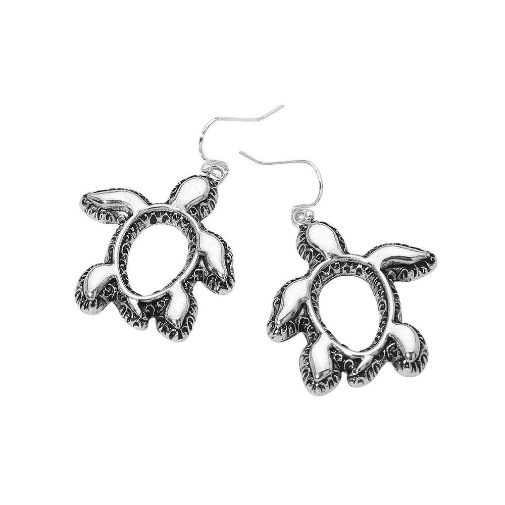 • Charming turtle drop earrings featuring an open oval center and textured detailing inspired by ocean life. Lightweight and easy to wear, these playful earrings are perfect for animal lovers, beach-themed gifts, boutique assortments, and everyday accessory styling.